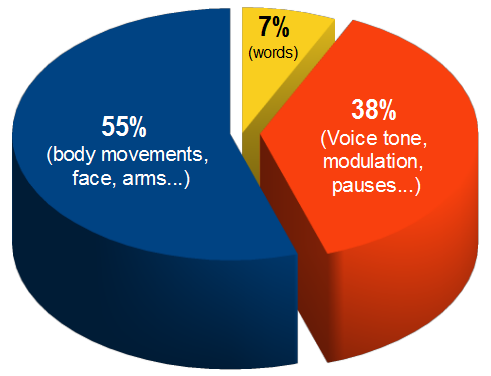And the remaining 55% is body language (our physical movements, facial expressions, the clothes we wear, etc...)